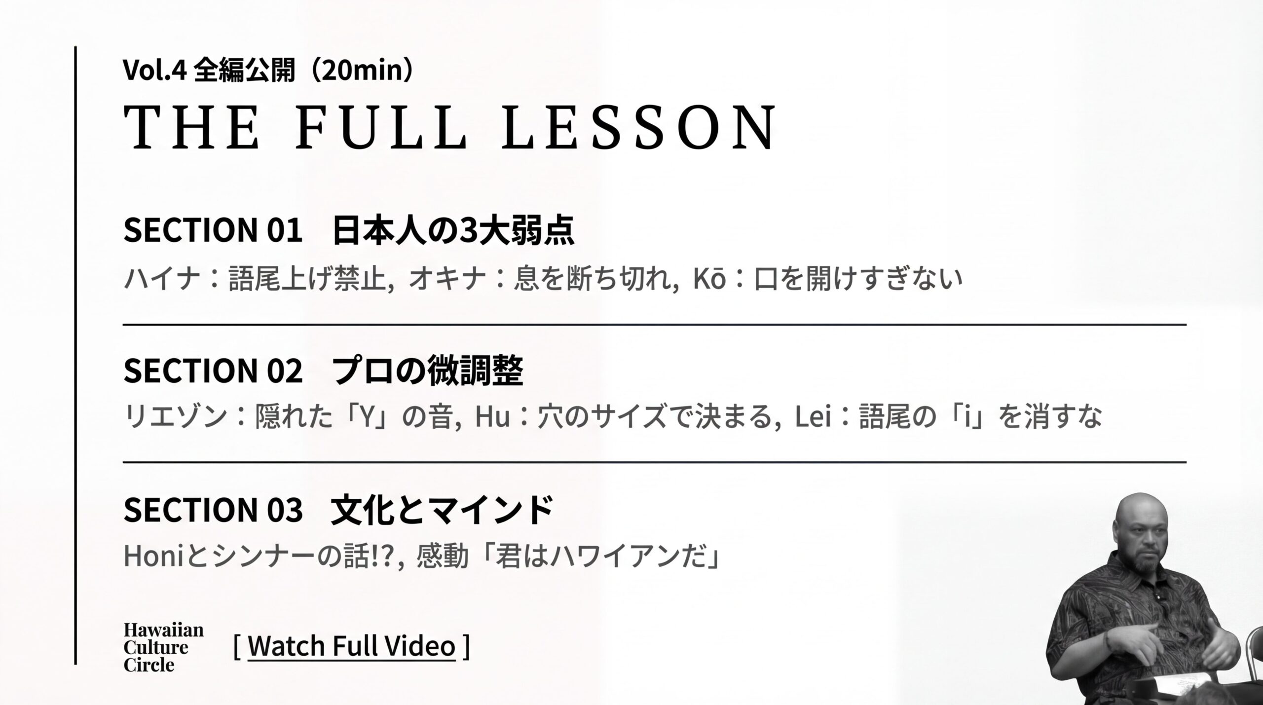 「ハイナ〜⤴︎」はNG?ネイティブが耳を塞ぐ、日本人フラダンサー「3つの発音の癖」【Keao Costa特別講義】 2025年12月19日 FC メンバーシップが必要です You must be a member to access this content. メンバーシップレベルを表示 Already a member? ここでログイン URL Copied!